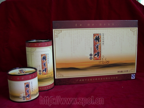 将军峰六堡茶 六堡茶是广西特产,其生产制作的历史可追溯到一千五百年前,在清朝嘉庆年间,广西六堡茶以其特殊的槟榔的香味而列为中国名茶之一。其品质素以“红、浓、醇、陈”四绝而著名,“红”是汤色透彻,深红明亮;“浓”是汤色红浓,滋味醇厚;“陈”是香气陈醇,具有槟榔香;“醇”是滋味甘醇,口感爽滑。