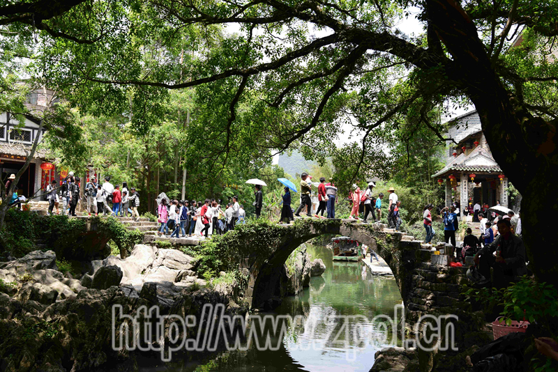 4月18日,正值壮族三月三假期第一天,黄姚古镇迎来旅游热潮,众多游客在古镇里观民俗表演,逛石板街巷,赏小桥流水,尽情享受假期。