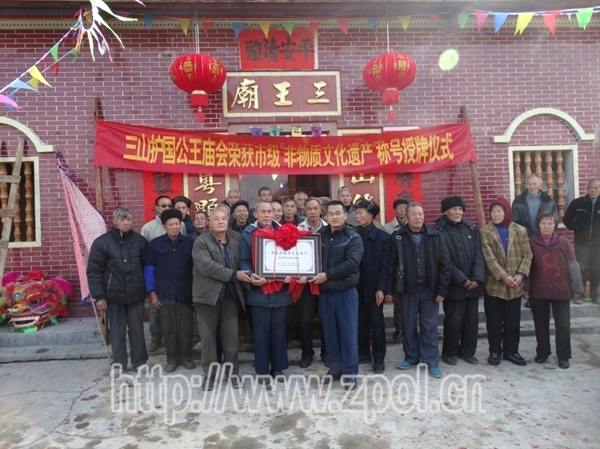 三王爷出游活动简介 来源: 作者:adminyys 发布时间:2016-11-18 15:15:14 浏览次数: 次 字体:A- A+ 三王爷出游主要分布于黄姚镇的中洞村和樟木林乡的樟林村和新华村,每年的农历正月十五日前后,当地民众都要举行盛大而隆重的“三王爷出游”祭祀活动,届时村民们抬着“三王爷”的神像出游,尾随的村民各自备有小鼓,边走边敲打,最多时达200面,意在祈福。而沿途百姓也备好祭品,当日各家素食,以示虔诚。近些年来,“三山护国公王出游”的祭祀活动已逐渐演变成祈祷风调雨顺,老少平安的民间民俗活动。 三王爷庙外观。 三王爷出游活动现场。 分享到: 打印正文 关闭本页