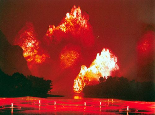 人,以及两位年轻导演——王潮歌、樊跃的加盟,数易其稿,历时三年半努力制作而成。她集漓江山水风情、广西少数民族文化及中国精英艺术家创作之大成,是全世界第一部全新概念的“山水实景演出”。