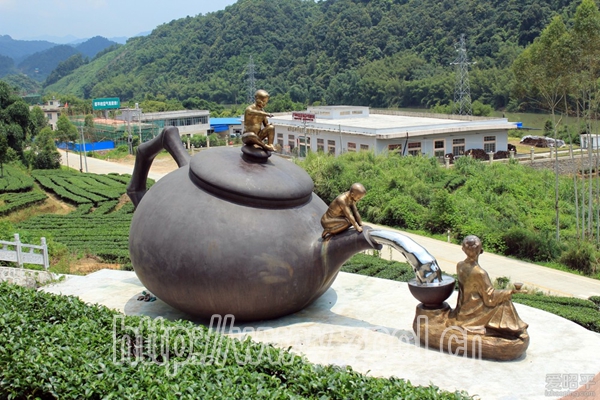 福行茶壶雕塑,位于走马镇福行村茶产业发展示范区内,紧邻207省道,距离昭平县城12公里,于2013年建成。昭平自古以来就有‘客来敬茶’,‘以茶代酒’的习惯,人们认为饮茶可健身袪病,茶文化在昭平表现得更为强烈的是老百姓对茶的热情。品茶、评茶、谈茶这些高雅的消遣已经进入了寻常百姓家。无论你进入大街小巷、农家民宅都会受到让座敬茶的礼遇。在上世纪六七十年代,昭平茶主要是野山茶,那时百姓敬茶主要是用大茶壶泡好,再分杯给客人。福行大茶壶雕塑设计思路便来源于此,寓意昭平人民用大茶壶泡茶迎客。