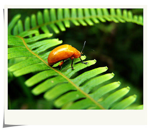 这虫儿我把它叫作“金弹子”(书名不是这样的吧),开始它在路面较高的地方,因此我很难有好的角度拍摄。拍了这张后,我把它取下放在路下方的树叶上,可它一下就飞入树丛去了。它的颜色把我的手指染得金黄金黄,直到第二天,颜色还无法完全洗去,可真够厉害的!