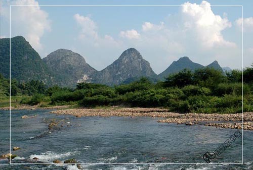 人们说到桂林必然会提及漓江,漓江凭着水的静、清、绿;山的奇、秀、险。让桂林摘下“山水甲天下”桂冠。既然黄姚是“小桂林”,那么它的母亲河姚江也应理所当然成为“小漓江”了。如果说黄姚是一幅幅精美的艺术品,那么姚江就是活着的“清明上河图”,它虽然没有漓江的雄伟,但它有着它的灵动;它虽然没漓江的浩荡,但它有它的酣畅;它虽然没有漓江的风姿卓约,但它有它含情脉脉的温情。