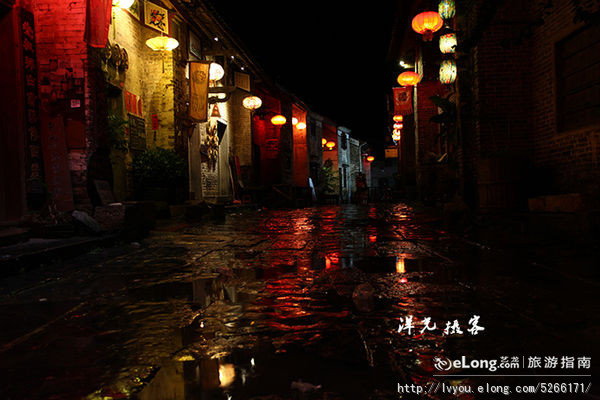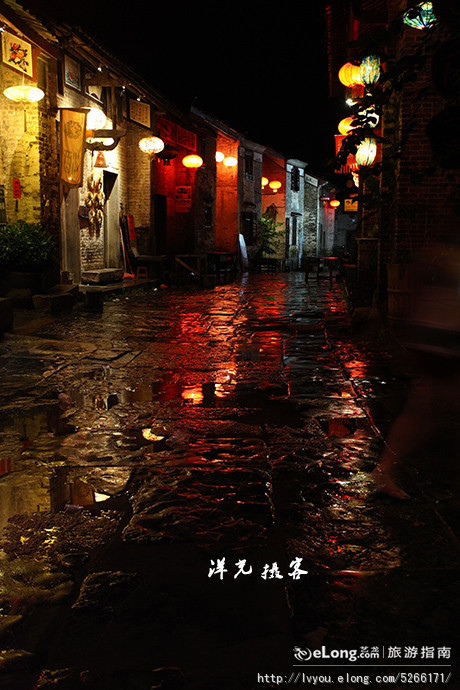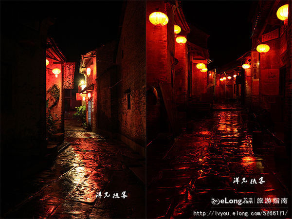 那天到达黄姚时天已很晚,当时天空还下着小雨,古镇里的人们似乎早已进入梦乡,空旷的小巷里显得安宁平静,雨后的青石板倒映着古宅门前的红灯笼,给人一种迷离沉醉的感觉。