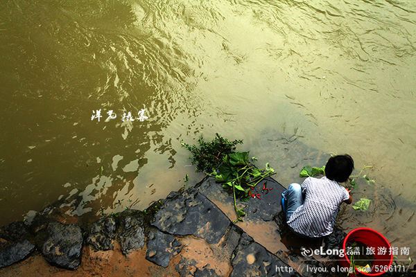 村妇在河边清洗刚采摘来的南瓜芽,她说,要不是昨天的一场大雨,这河里的水可以很清澈。