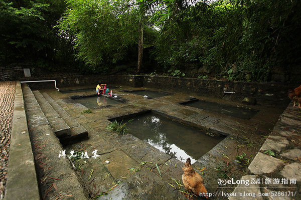 十几米的地面凿成了几个方块。按不同的功能分为饮用水、洗手池和洗衣池。