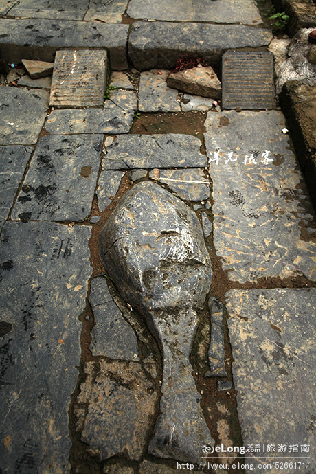 黄姚古镇有一条街叫鲤鱼街,原来在铺石板时,在街中心碰上一块天然石板露出的石脊,石匠们匠心独运,将石脊凿成一条长约两尺的石鱼,突出街中心,高于街面约3寸许,摇头摆尾,形态生动,称为“盘道石鱼”,由此可见当年石匠们的创意。