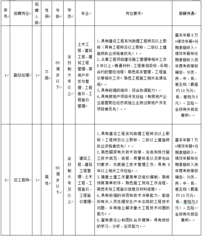 (一)广西昭平县城市建设投资有限公司成立于2006年1月,注册资金1000万元,2017年末,公司总资产15.34亿元,是昭平县人民政府的直属国有企业,也是县人民政府指定的投融资平台,昭平县政府性投资的主体企业。公司履行“投资出资,政府项目主体”的职能,以建设城市,经营城市为已任,主要从事城市基础设施建设、公共设施建设项目的筹资、建设、经营和管理,房地产开发及土地收储等业务。该公司急需招聘副总经理1名、总工程师1名,条件如下: