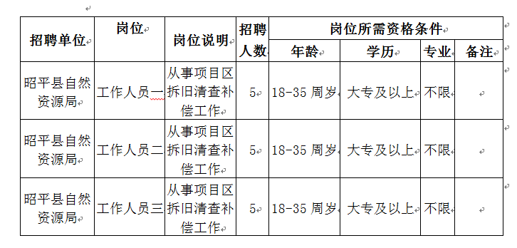 本次招聘昭平县自然资源局编外人员共15人。具体岗位及要求如下: