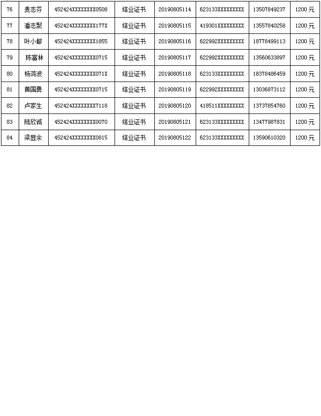 根据贺人社函〔2019〕52号、贺人社函〔2019〕68号、贺人社函〔2019〕73号、贺人社发〔2019〕20号、昭人社字〔2019〕25号和昭人字〔2019〕26号等文件精神,为确保享受国家给予的扶持政策公正、公平、公开,现将建档立卡贫困户陈建华等84人申领2019年培训期间生活费补贴的情况予以公示,公示期为5天。如有与其情况不符的,请与昭平县人力资源和社会保障局联系,联系电话:0774-6693603。