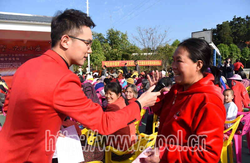 为了进一步凝聚、鼓舞全区人民决战决胜脱贫攻坚,建设美好小康生活的决心、信心和斗志,1月12日,由自治区扶贫办、广西广播电视台联合主办的“克难攻坚•决胜小康——2020年文化扶贫下乡巡回演出活动”走进我县昭平镇马圣村。活动中,来自全区各地的文化文艺小分队用深情嘹亮的歌声,风趣生动的表演,为贫困地区的群众献上了一场文化大餐,用文艺的力量,提振当地群众脱贫信心,助推全县脱贫攻坚工作。