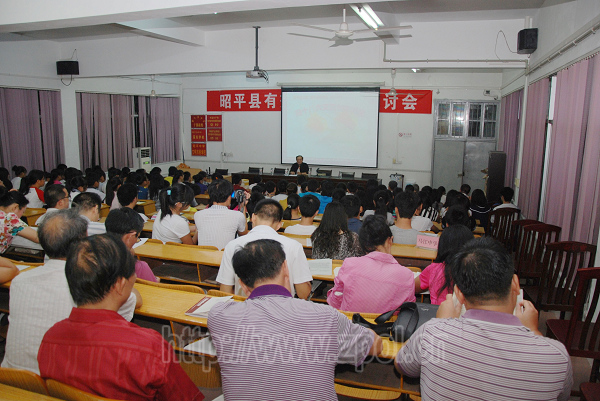 9月27日晚,昭平中学多媒体教室座无虚席,气氛热烈。应县文联的邀请,广西著名作家李侃、马玉成来我县授课、交流。我县作家协会会员及文学爱好者一百余人参加了文学讲座活动,聆听作家创作心得,与作家面对面的交流。