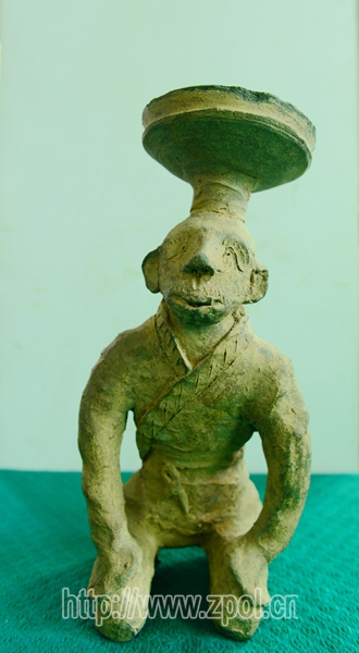 经文物专家组鉴定,兽面人身陶俑灯属于东汉产物,陶俑灯高29.3厘米,宽10.5厘米。灯宽11厘米,阔脸、深目、高鼻、大耳,着衣服,跪坐,两手分置于膝上。