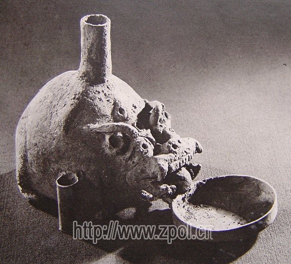 神兽铜砚滴,国家一级文物。这件精美绝伦的文物是1976年出土于广西昭平县北陀镇乐群7号东汉墓中,属于汉族的文化用品。该器物为青铜,异兽,腹中空,用于储水,头有竖管,兽嘴吐舌衔圆盘,鼻孔高隆,为出水之用,露牙,四足蹲伏,双眼圆睁,双角后反,张嘴龇牙,舌头外伸,头似龙、身似象、脚如鼠、做工精细,造型十分生动。腹的两边竖有两支孔管,正好用以插笔,兼有砚滴与笔架的双重功用,整器高8.7、长13.8、宽8.1厘米,张嘴吐舌衔着一只小碟盘,铜盘唇口浅腹,铜盘口径5厘米。为范铸。“舍源未出,有似清泉,润彼玄(黑色的)墨,染此弱翰(毛笔),申情写意,经玮群言”,巧妙结合的怪兽,气势雄浑,体现中国古代人民的智慧,反映墓主人在文化修养方面飘逸闲散和安然精致的生活情趣,造诣很高。