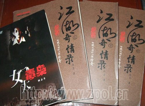 阿志创作的小说《女大毒枭》、《江湖奇情录》。李永强 摄