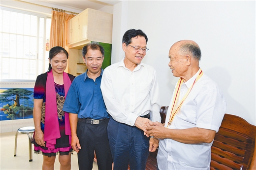 本报南宁讯 (记者/董文锋)在纪念中国人民抗日战争暨世界反法西斯战争胜利70周年来临之际,8月27日上午,自治区主席陈武专程登门看望慰问抗战老战士黄其祥,共忆难忘的烽火岁月,共话革命精神传承。