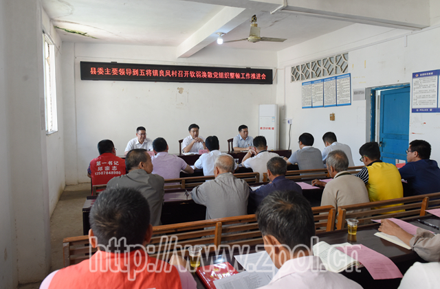 9月27日上午,县委书记刘飞国来到五将镇良风村调研指导弱软涣散党组织整顿工作,并召开推进会。他强调,要把整顿提升软弱涣散党组织工作作为提升基层党组织战斗力的重要契机,作为“不忘初心、牢记使命”成果转化的一项内容来抓好抓实。