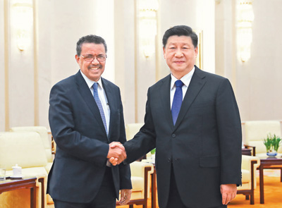 1月28日,国家主席习近平在北京人民大会堂会见世界卫生组织总干事谭德塞。 |