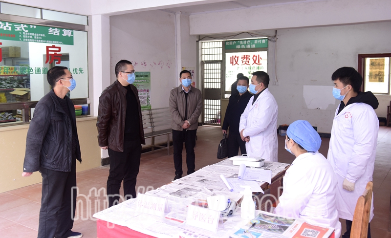 图为柳继斌到仙回瑶族乡卫生院检查疫情防控工作现场。