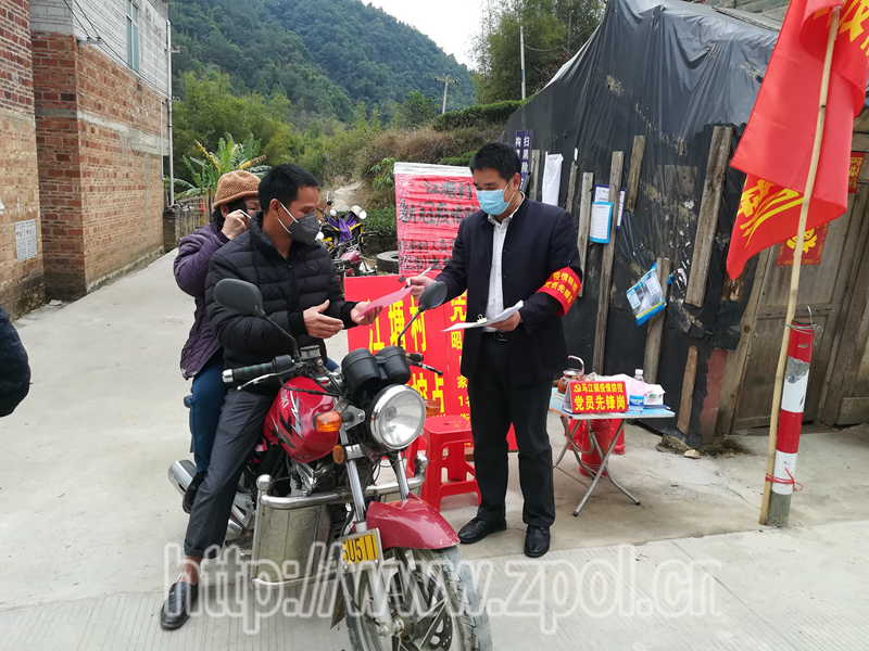 图为吴文靖在江塘村春冲口防控点值班现场。