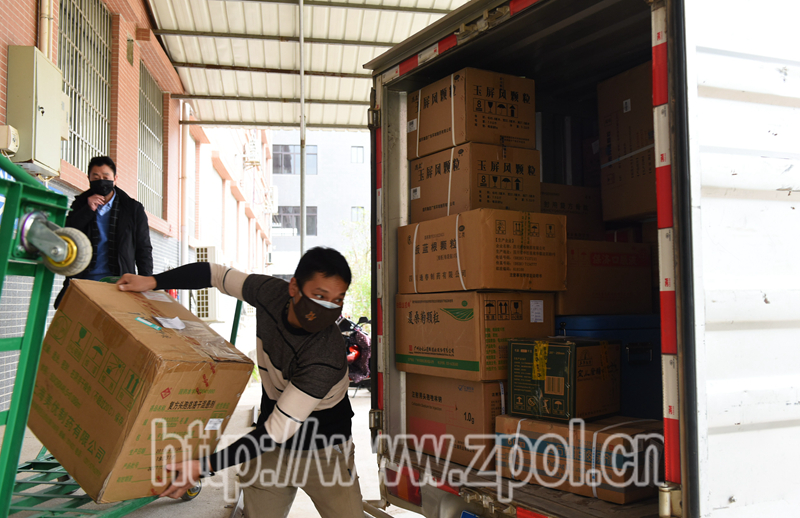 图为在华泰药业有限公司里员工正在发配药品供应市场。