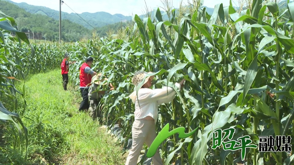 在昭平镇福登村的玉米种植基地里,金黄的玉米穗垂挂枝头,村干部与村民们正齐心协力采收首批试种成熟的玉米。放眼望去,50余亩玉米地里,成熟的玉米秆在微风中轻轻摇曳,浅绿色苞叶如“翡翠纱衣”轻裹着饱满的玉米穗。凑近细看,紫白相间的玉米粒宛如珍珠,在阳光下折射出温润光泽。“迪彩甜糯676”玉米兼具鲜食与加工价值,既可煮食软糯香甜,又能加工成玉米汁、速冻产品,市场前景广阔。