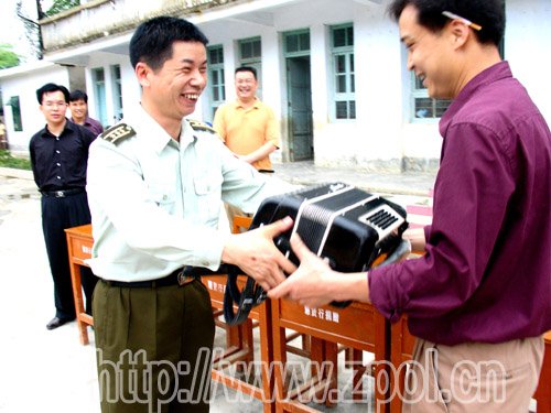 武装部部长朱经武位马圣小学送上一台手风琴。