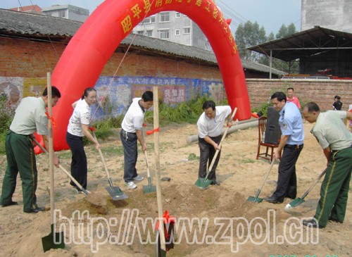 市消防支队政委李记生、陈文珍、罗贞杯、刘庆荣等县领导,以及人武部、公安、检察、法院、武警中队等有关部门的领导出席开工仪式并为扩建工程培土奠基。