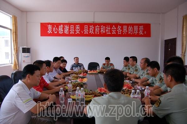 7月22日,县委副书记张达河、县政协副主席刘一华以及共建单位的领导来到县武警中队进行“八一”慰问。慰问团受到了全体武警官兵的热烈欢迎。