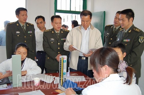 11月20日,县长陈有辉到体检现场检查征兵体检情况,看望和慰问现场的应征青年和工作人员。
