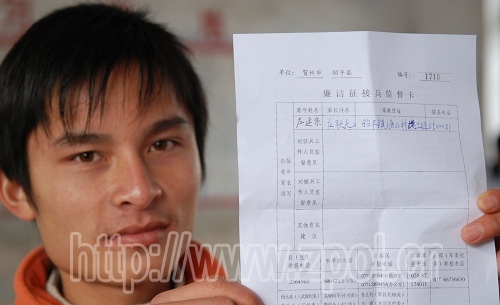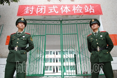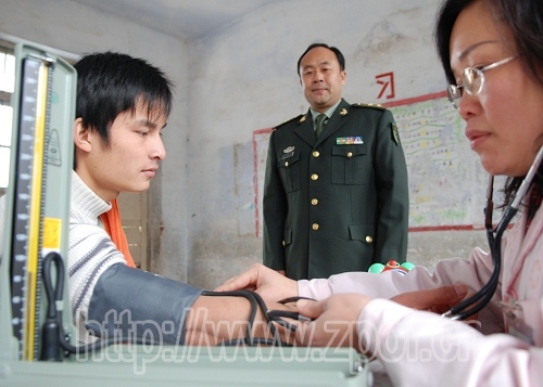 2009冬季征兵体检已全面展开 来源: 作者:adminyys 发布时间:2009-12-11 14:55:55 浏览次数: 次 字体:A- A+ 11月20日,两名武警战士在封闭式体检站门口执勤。当日,我县2009年冬季征兵体检全面展开,经过初检初审合格的适龄应征青年踊跃前来参加体检,接受祖国和人民的挑选。 (喻湘泉 龚立荣 摄) 县委常委、人武部政委文建坤(中)在体检站看望参加体检的适龄应征青年。 一名医生在给适龄应征青年测量心率。 一名参加体检的适龄应征青年在展示征兵办发放给他的廉洁征兵监督卡。 分享到: 打印正文 关闭本页