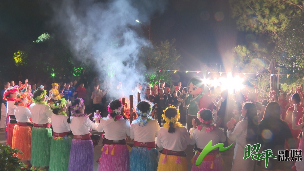 晚会在激昂奋进的开场歌舞《花开中国》中拉开帷幕。整场晚会分为“茶乡迎客来” “秀美新昭平” “相聚鹊鸣春”“骏马奔腾飞”四个华彩乐章。《茶山夜雨》、《寿乡水昭平茶》等节目结合本地特色,艺术化地展现了昭平作为茶乡的独特韵味与待客之情。非遗展演节目《仙回瑶族调马》,以其原生态的魅力,将现场气氛推向高潮。在篝火表演环节,众人围火歌舞,点燃了全场每个人的热情,绚烂的烟花在空中绽放,点亮了昭平的夜空。
