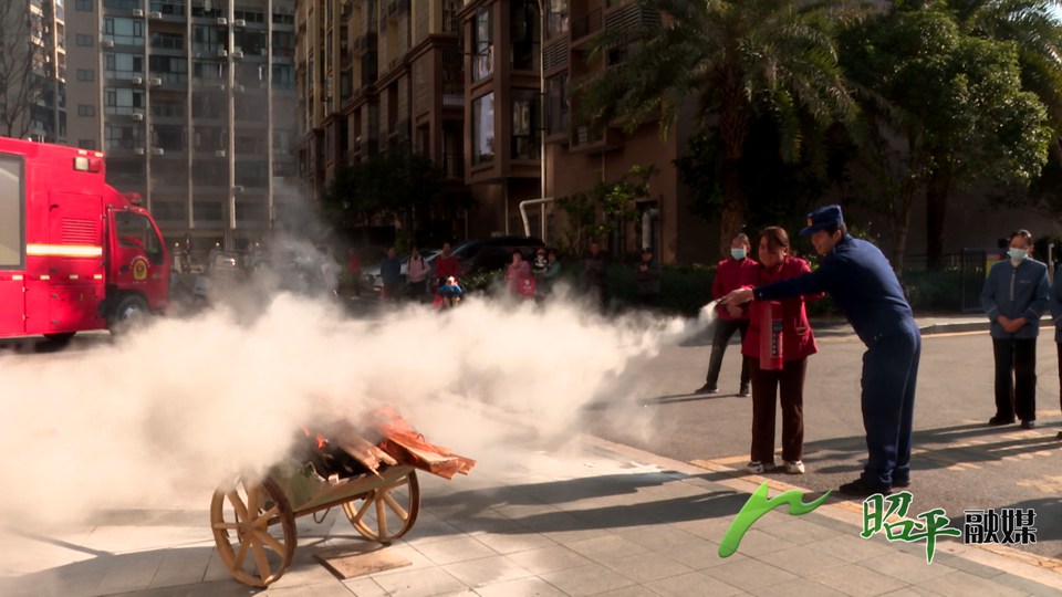 1月8日,由昭平县消防救援大队组织开展的高层建筑住宅小区消防演练活动在昭平县城公园世家小区举行。