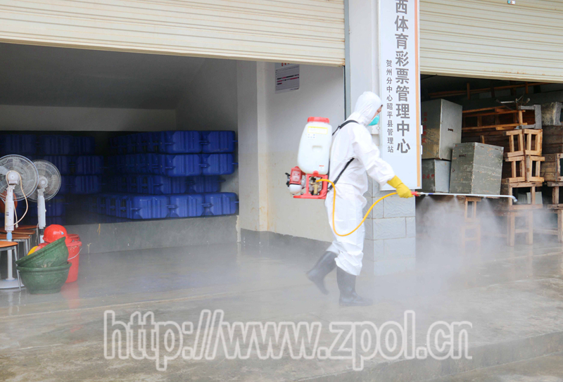 图为工作人员正在消毒。