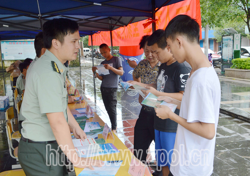 2017年征兵工作已经全面铺开,我县征兵办于7月7日在榕园进行了"征兵宣传周"启动仪式,并确定7月7日至14日为"征兵宣传周"。活动现场工作人员给广大适龄青年朋友及家长们进行了答疑解惑。同时,各乡镇将也在主要街道路口开始征兵咨询点,接受适龄青年朋友的咨询。