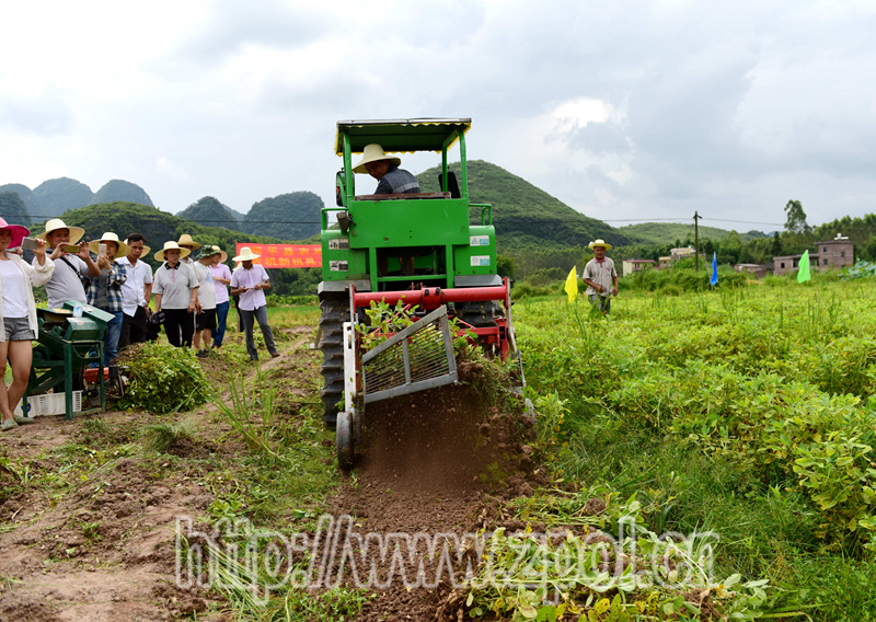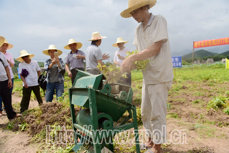 8月3日,我县在黄姚镇笔头村召开花生机械化收获现场观摩会,来自各乡镇农机管理站的工作人员和部分农民朋友观看了现场演示。现场会上,县农机部门技术人员向在场人员详细讲解了花生收获机的功能、工作原理和操作方法,并进行了现场演示。