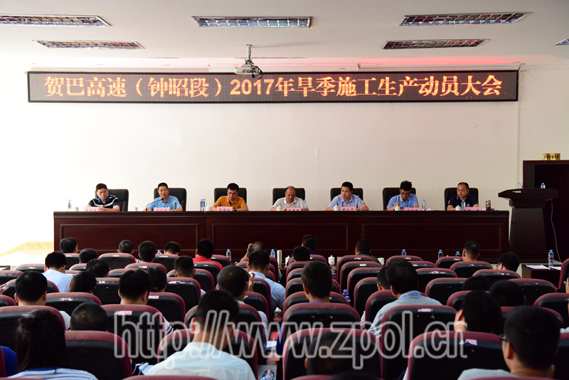 8月18日,贺州至巴马高速公路(钟山至昭平段)2017年旱季施工生产动员大会在我县召开。广西新发展交通集团有限公司副总经理庞博新出席会议并讲话,为战斗在贺巴高速公路(钟昭段)建设一线的建设者加油鼓劲。