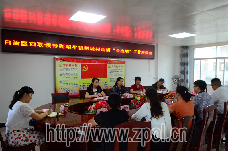 调研组一行先后深入昭平镇马圣村儿童之家、全国巾帼科技示范基地--昭平县故乡茶业有限公司茶业种植基地、华泰药业有限公司妇女之家、县人民法院城厢人民法庭妇女儿童维权岗等地实地调研,深入了解我县妇联改革进展情况和存在问题,并在昭平镇附城村("会改联"试点村)召开座谈会。