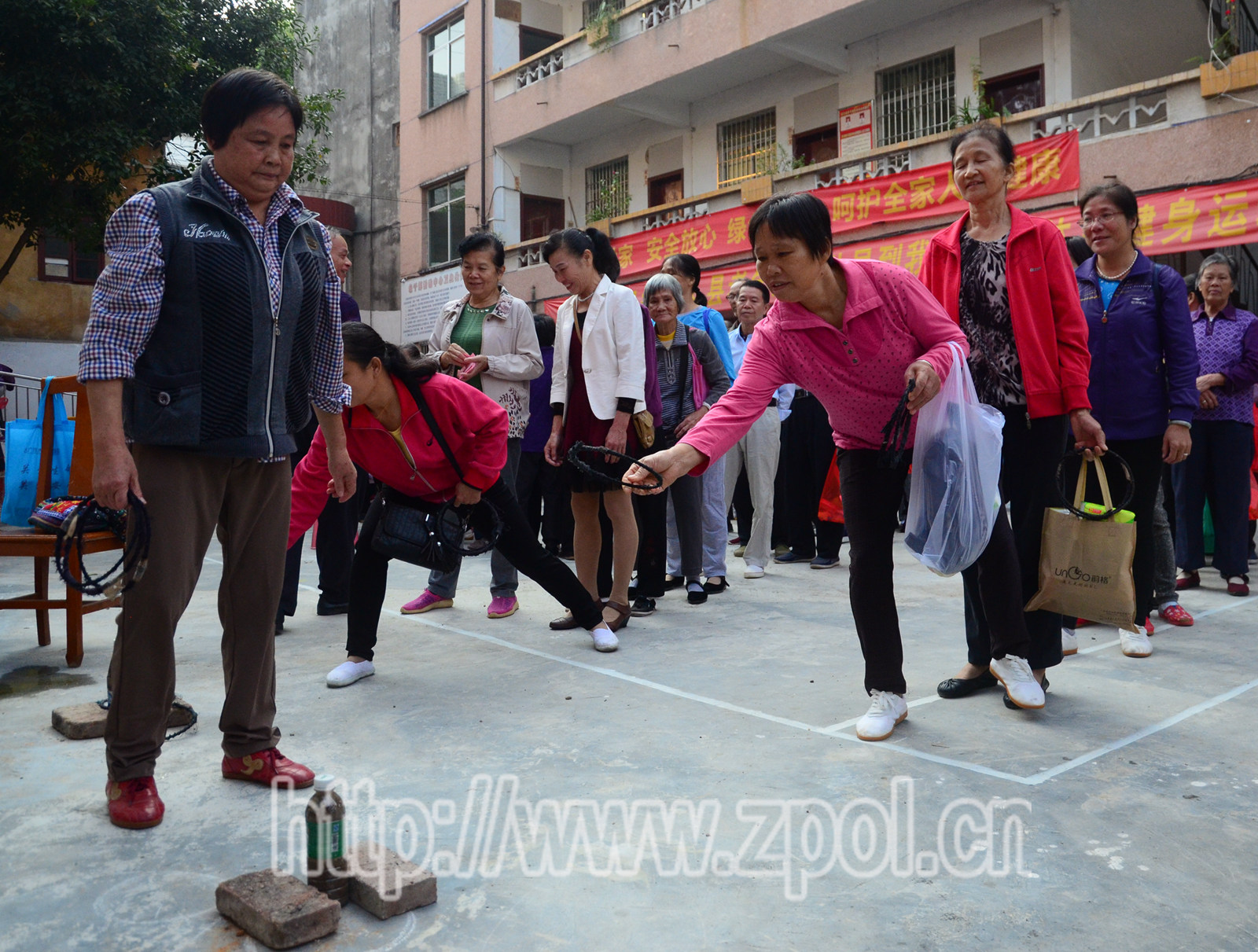在活动中,每个游园项目前老人们都自觉排起了长队,人人跃跃欲试。各项活动同时进行,乐趣横生,老人们脸上挂满了笑容,热闹愉悦的气氛充满了整个操场。老人们在完成了每个项目之后,还能根据成绩得到相应的礼品兑换票。只要攒够了一定的兑换票,就可以到兑换窗口,兑换牙膏、纸巾、面条等奖品。