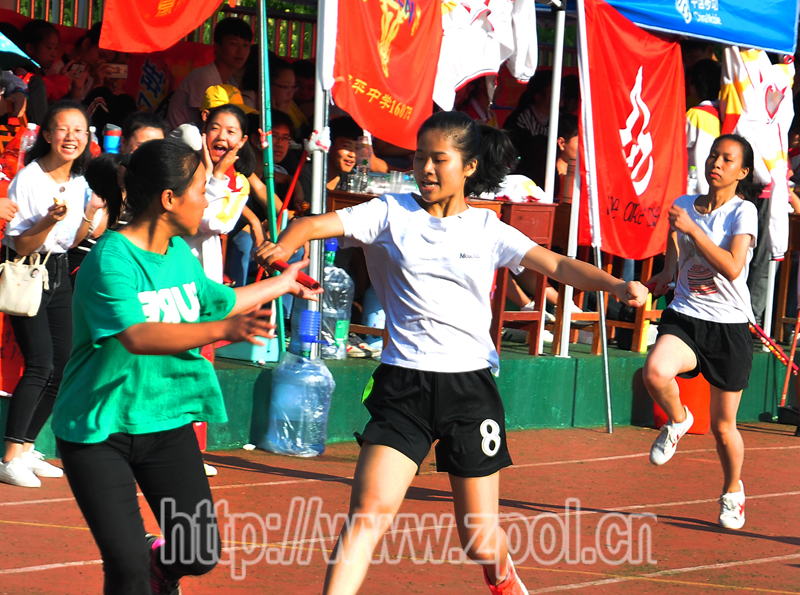 校园里喜气洋洋,彩旗飘飘,一片沸腾。赛场上,跑步、跳高、实心球、毽子、跳绳等各项比赛紧张有序地进行。运动员们在赛场上你争我夺,发扬了"更快、更高、更强"的体育精神,赛出了风格、赛出了水平、赛出了友谊,一展昭中阳光学子的风采,用汗水唱响了青春之歌。比赛第一天,女子跳高健将汤淑青同学打破自己去年1.34米的记录,创1.41米女子跳高记录。