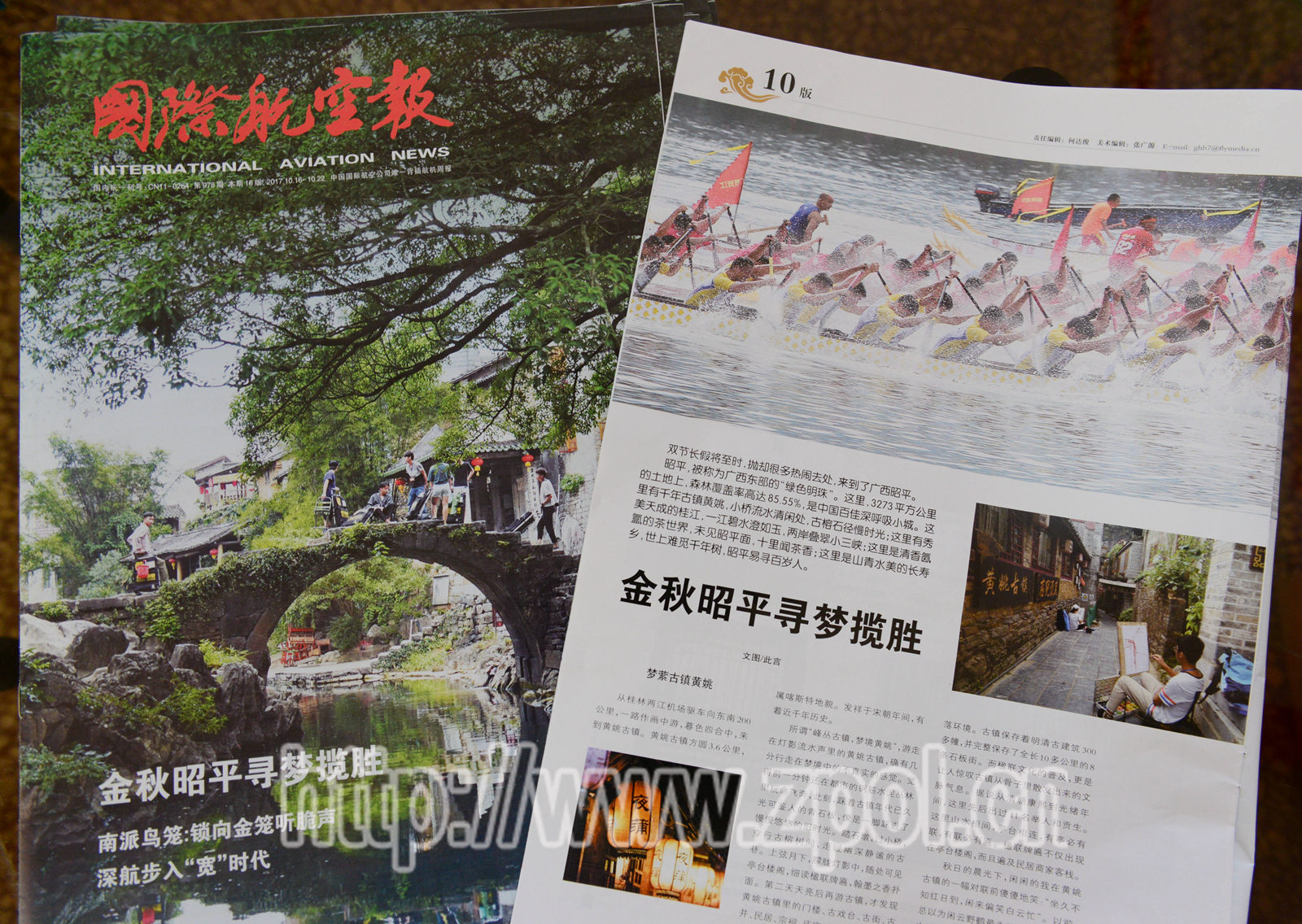 在该期刊物中,记者以《金秋昭平寻梦揽胜》为题,从游黄姚古镇、观桂江龙舟竞渡、闻南山茶海飘香、听长寿之乡故事中,将昭平生态旅游、休闲养生、茶叶产品等特色资源娓娓道来,呈现在全国各飞机乘客面前。
