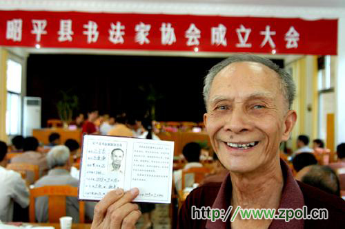 我县书法家协会成立 来源: 作者:Admin 发布时间:2009-12-11 14:38:47 浏览次数: 次 字体:A- A+ 昭平县书法家协会成立会场。 贺州市著名书法家陆达仁到会祝贺。 古稀之年终成“家”。75岁的退休教师冯有恭举着书法家会员证笑得合不拢嘴。 9 分享到: 打印正文 关闭本页