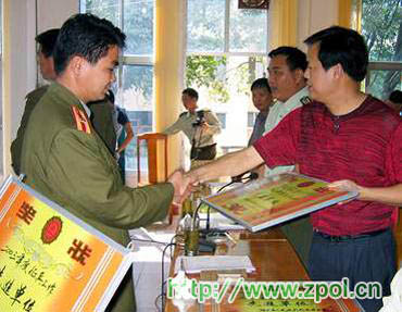 县委常委、常务副县长谢远政为2003年征兵工作先进单位颁奖